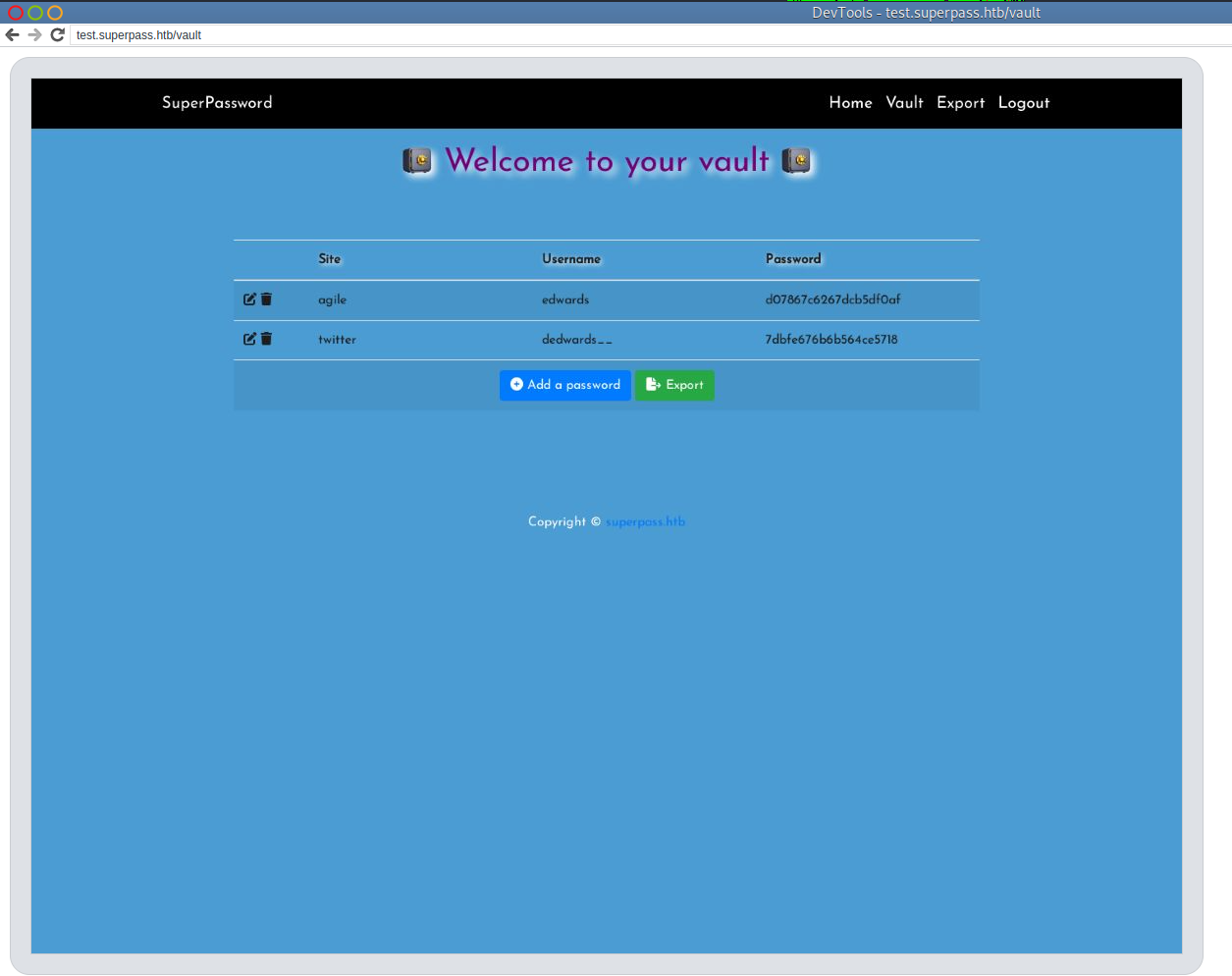 Here we have a SSH on port 22 and a http on port 80 redirecting to http://superpass.htb