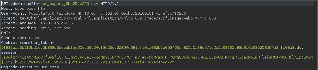 With the username abc, the file is generated under the form USERNAME_export_RANDOMSTRING. Let’s try to get the /etc/passwd file with LFI.