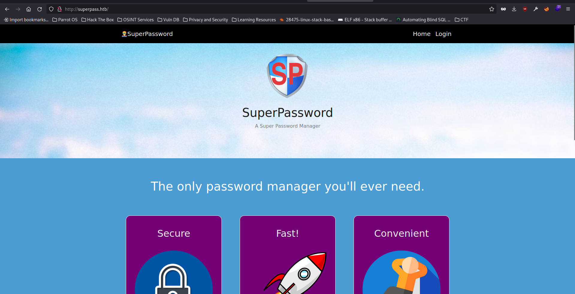 After having added superpass.htb to my /etc/hosts file, I headed to the site.