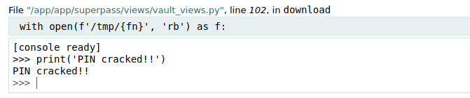 One thing interesting about Python Flask is that it allows developer to execute command remotely in debug mode to debug the application. This console is protected by a PIN, which can be replicated if we have enough information on the system.
