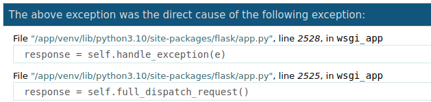 Thanks to the debug information, we can also know that the application working dir is /app/venv/lib/python3.10/site-packages/flask/app.py and the application name is wsgi_app